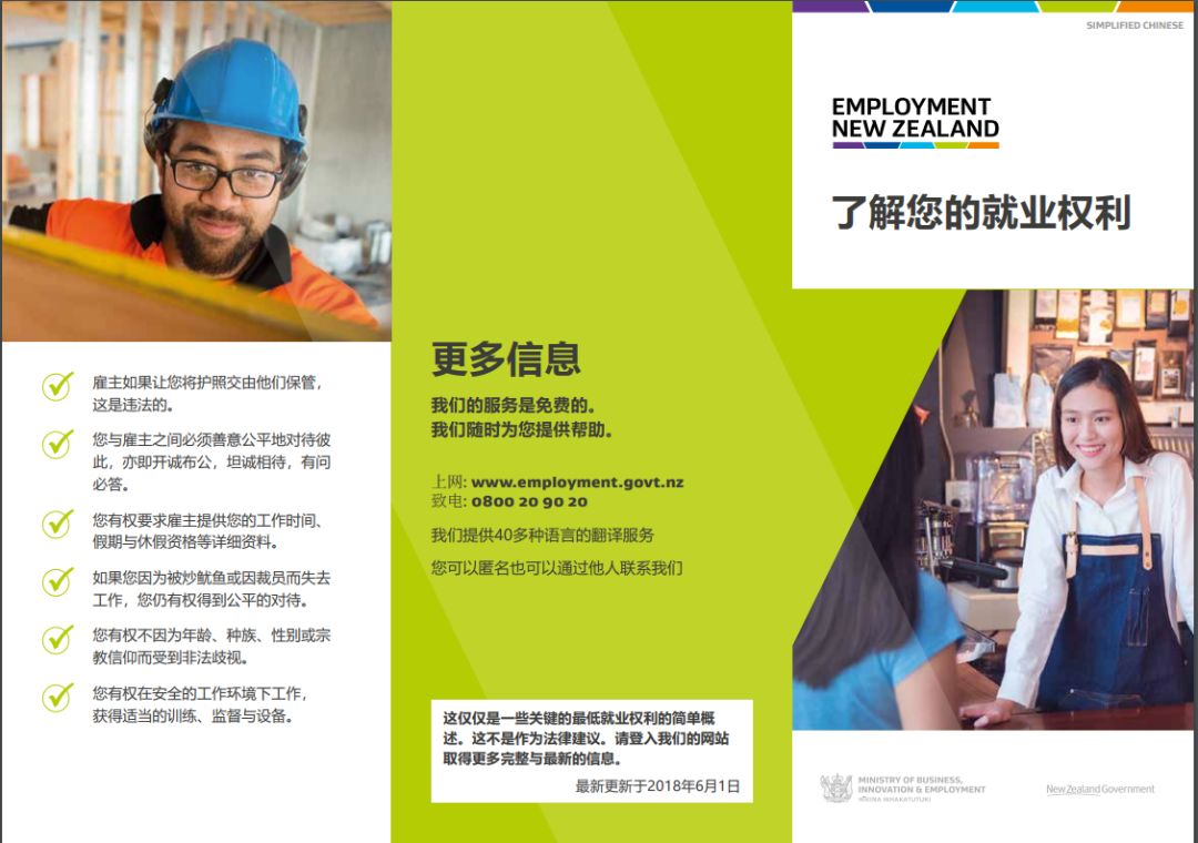 雇主必须保证其雇用的人员拥有在新西兰工作的权利。