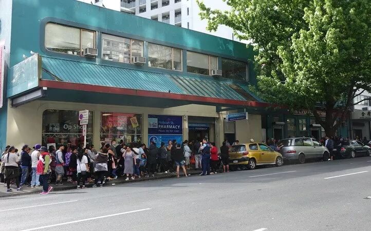 Auckland City Mission的三个圣诞食品包分发点前排起了长龙。