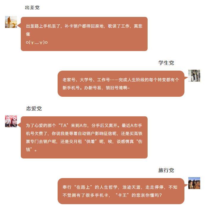 今年9月,国务院第八督查组邀请10名网友代表,与三大电信运营商面对面交流。现场,针对网友反映较多的手机卡丢失或停用后,需返回原办卡地补卡、销号的问题,三大运营商给予了回应。
