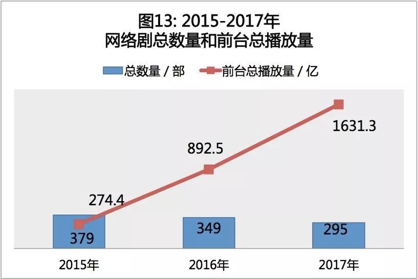 骨朵数据显示,2015年至2017年间,网络剧的播放量从274.4亿增至1631.3亿,爆款层出不穷,《白夜追凶》《延禧攻略》等更是成为了全民热追的大剧;艺恩数据发布的《2017中国网络综艺市场白皮书》则显示,2017年159部网综的网络播放量已经达到505亿,播放量上已经十分接近168部台综647亿的播放量,而随着《偶像练习生》《创造101》等热播,这一差距有望在今年进一步缩小,甚至实现反超。