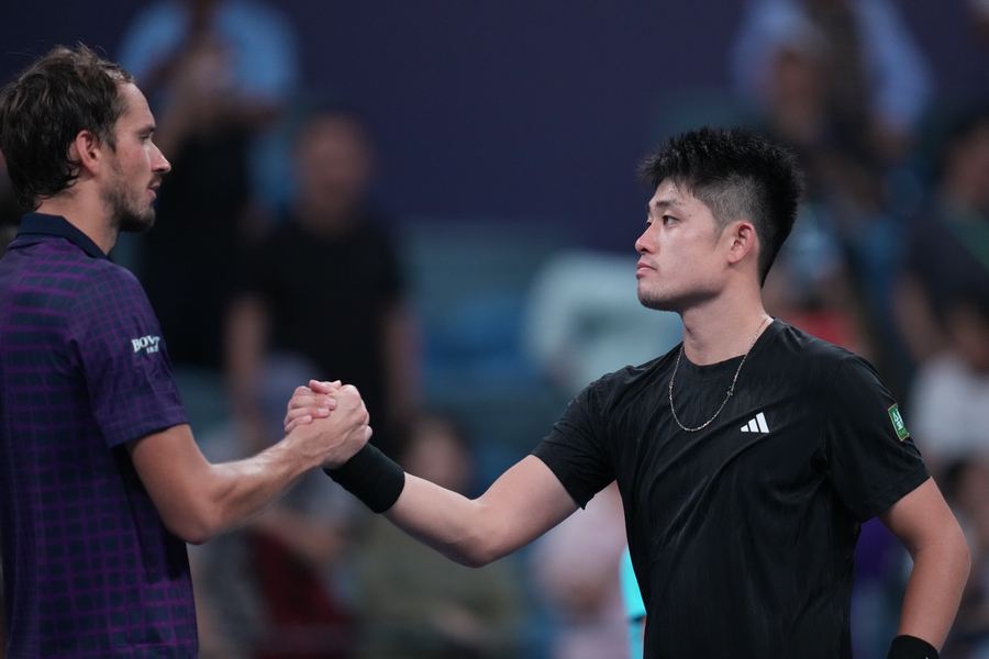 新华社杭州9月21日电(记者夏亮)在21日进行的男子职业网球协会(ATP)250杭州网球公开赛四分之一决赛中,吴易昺在先丢一盘的情况下,再次上演逆转好戏,2:1击败赛会2号种子梅德韦杰夫,首次闯入赛事四强。 “我战胜了很强大的对手。在家能够打进四强,我觉得对于我整个职业生涯来说,可能比我在达拉斯拿到ATP冠军更重要。”吴易昺赛后说。 9月21日,吴易昺在赛后庆祝获胜。新华社记者 黄宗治 摄 面对赛会2号种子、现世界排名第18的梅德韦杰夫,吴易昺在赛前坦言,想要赢得比赛,自己必须在比赛中做出改变。“我觉得以我最擅长或者最舒服的打法,可能没有办法打穿他的防线。我可能需要做一些自己舒适圈之外的事情,在比赛当中去尝试一些自己可能不是最擅长的东西,那也许会有奇效。” 比赛中,梅德韦杰夫首盘便展示了自己强大的实力,尽管吴易昺拼尽全力想保住自己的发球局,但最终还是5:7先丟一盘。 9月21日,吴易昺在比赛中回球。新华社记者 黄宗治 摄 第二盘比赛,梅德韦杰夫一度5:4领先并手握发球胜赛局。绝境之下,吴易昺触底反弹,两度逼出破发点,而这也是他在这场比赛中首次获得破发机会。随着梅德韦杰夫发球双误,吴易昺成功将局分扳平。 第10局的关键胜利,也成为全场比赛的转折点。在随后的抢七大战中,吴易昺一鼓作气,7:6(5)将比赛拖入决胜盘。 决胜盘的比赛,吴易昺率先完成破发,并把握住发球胜赛局的机会,最终6:4获胜,从而继前两轮之后,第三次在本次赛事上完成逆转,同时也是职业生涯首次在家门口的赛事中打进四强。 9月21日,吴易昺(右)获胜后与梅德韦杰夫握手致意。新华社记者 黄宗治 摄 “今天对手大家都很熟悉,可能比熟悉我更熟悉。根据我的打法,其实很难赢下这样的对手。”总结这场比赛,吴易昺笑着说:“反正就是很困难,我做得不错。” 半决赛,吴易昺将对阵3号种子、哈萨克斯坦选手布勃里克,后者在四分之一决赛中6:1、6:1速胜将张之臻挡在八强门外的捷克小将斯夫尔奇纳。 |