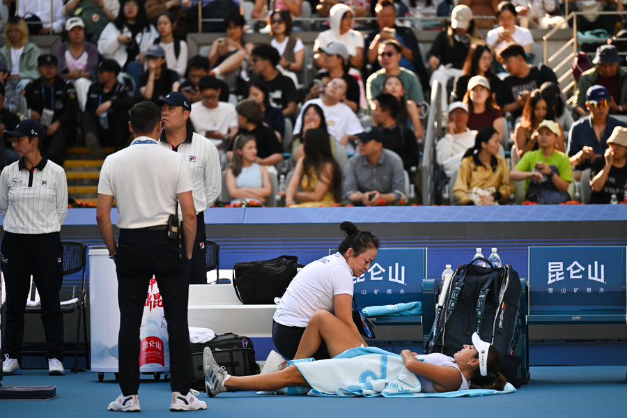 新华社北京9月29日电(记者王春燕、肖亚卓)2025年中国网球公开赛29日继续在国家网球中心进行,但“退赛潮”意外来袭,包括中国“金花”郑钦文在内的五位单打选手在比赛中因伤退赛。随着郑钦文无缘女单16强,参加本届中网单打比赛的中国选手已全部出局。 9月29日,郑钦文在比赛中。新华社记者 那宇奇 摄 在国家网球中心钻石球场的夜场比赛中,7号种子郑钦文迎战20岁的捷克选手诺斯科娃。首盘郑钦文开局被破发,虽然一度回破,但在关键分把握上略逊一筹,以4:6先丢一盘。第二盘她加强进攻,在第六局完成关键破发后以6:3扳回一城,将比赛拖入决胜盘。 进入第三盘,诺斯科娃先声夺人,很快建立3:0的领先优势。局间休息时,医务人员上场与郑钦文交流。短暂沟通后,郑钦文选择退赛,比赛就此结束。 9月29日,郑钦文离场时向观众致意。新华社记者 那宇奇 摄 “比赛中,我感觉到了疼痛,这其实很正常,如果疼痛继续加剧,我就应该停下来。第二盘我一直在想这个事……到第三盘就决定,就这样吧。”郑钦文在赛后新闻发布会上如是解释退赛的决定。 郑钦文坦言,来中网参赛其实有点操之过急,但也是正确的决定。“因为在中网比赛,可以好好地评估身体状况。”对于接下来的安排,她表示要先检查手肘状况如何,现在感觉还比较积极。 “退赛潮”成为当日中网赛场的主题词,除郑钦文因伤退赛外,法网女单四强选手、法国人布瓦松,哥伦比亚选手奥索里奥,20岁捷克小将门希克、赛会男单4号种子穆塞蒂都在比赛过程中因伤退赛,原本计划出战男双比赛的卡什/格拉斯普尔则在赛前退出了与卡恰诺夫/卢布列夫的比赛。 收到奥索里奥“退赛大礼”的波兰选手斯维亚特克,在晋级女单16强的同时,职业生涯总胜场数达到400场。 9月29日,奥索里奥在比赛间隙接受治疗。新华社记者 辛梦晨 摄 斯维亚特克在新闻发布会上也表达了对赛季末伤病袭来的无奈。“赛季非常长,下半年大家都非常疲惫,(在)亚洲赛季大家都会觉得很困难,因为大家都觉得赛季快结束了,但还需要加一把劲,这时候是很容易受伤的。” “有些比赛是强制性的,但所有人都要遵守规则,同时也要保证身体健康,这样的平衡很难,我现在能做的就是既然选择去打这些强制性赛事,就要好好保护自己。”斯维亚特克说。 当日女单赛场还产生了多个16强席位。赛会4号种子安德烈耶娃、5号种子佩古拉、16号种子纳瓦罗、乌克兰选手科斯秋克、英国选手卡塔尔和俄罗斯选手波塔波娃均顺利晋级。 9月29日,辛纳在比赛中庆祝得分。新华社记者 那宇奇 摄 男单方面,世界排名第二的意大利名将辛纳以6:1、7:5战胜匈牙利选手马洛桑,晋级半决赛。辛纳将与澳大利亚选手德米纳尔争夺一个决赛席位,后者因对手门希克伤退而提前过关。8号种子梅德韦杰夫以两个6:3击败兹维列夫,他的半决赛对手将是收到穆塞蒂“退赛大礼”的小将勒纳·钱。 30日将上演两场男单半决赛,届时将产生本届中网的男单决赛选手名单。 |