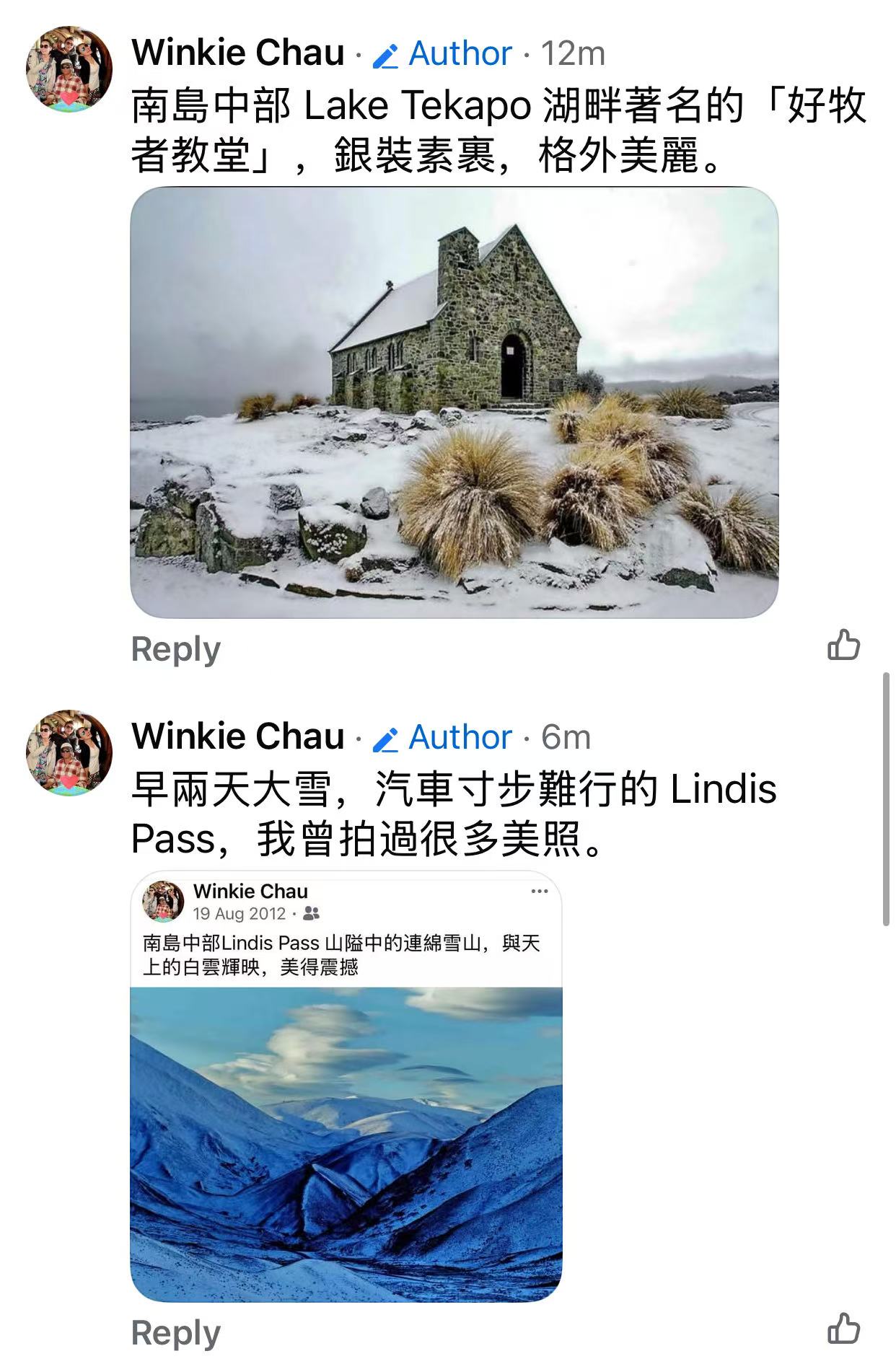 基督城罕有地下雪,所在的坎特伯雷高地,迎來毀滅性強風。 而連日的暴雨過後,河流水位持續上升。再往北,威靈頓和懷拉拉帕,也遭受時速超過 140 公里的強風襲擊,其強度足以刮倒樹木並擾亂航班。 南島西海岸仍處於洪水和土石流的警戒狀態,我剛往遊未幾的小鎮 Hokitika ,缺水斷電。 我致電相熟的Motel 東主Simon 問候,獲覆幸無大礙。至於北島面臨塔斯曼海的New Plymouth 亦有暴雨和雷暴,9月時已無緣一睹 Mt Taranaki 「日本富士山」美姿,這般天氣下,更不消說了。 紐西蘭這次最冷的晚春暴風雪,導致大片地區陷入一片黑暗。凜冽的寒風和厚厚的積雪,席捲大小城鎮,導致電力中斷,居民被困在冰冷的房屋中。 農民則竭盡全力保護牲畜安全,而緊急救援隊則加緊搶修被冰雪壓垮的線路。由於氣溫遠低於零度,許多房屋仍然沒有暖氣,這對家庭和老年人來說非常危險。 南島各地的道路多仍關閉,當局敦促人們節省電池電量,並待在室內,直到天氣好轉。 我帶着海外來客,遇到此等極端惡天,經驗不少,早習慣隨機應變,果斷處置。 而在確保安全和把行程影響減到最小後,便會借機拍攝,非如此沒法一遇的非凡景緻。 像這場罕見的10月寒流,使紐西蘭大部分地區,呈現一片白茫茫景象,唯有大自然以無比威力,賠上破壞才能塑造的奇美。 |