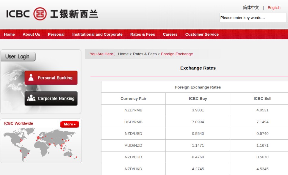 ICBC Bank 新西兰元兑人民币:买入价 3.9831卖出价 4.0531