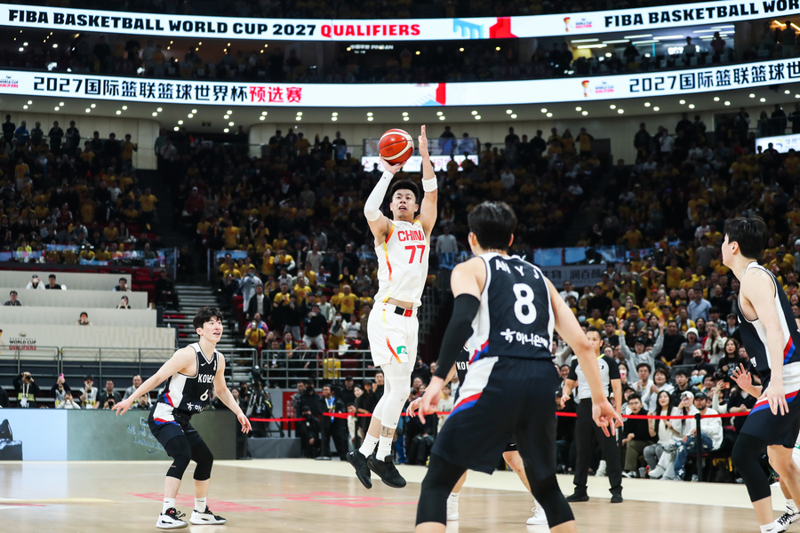 中国男篮在开场后率先在内线打开局面,以3:0领先,但韩国队迅速找到状态,核心得分手李贤重连续在外线命中,帮助客队逐渐掌控局面。随着比赛进行,韩国队在外线的手感越投越热,中国队则迟迟找不到手感,双方分差持续拉大。 比赛最后时刻,张镇麟连续命中三分球,让中国队看到了取胜希望,但在分差追至只剩3分后,中国队连续在外线出手不中,最终未能实现逆转,以4分之差饮恨。 11月28日,中国队球员张镇麟(上)在比赛中投失“绝平”三分球。新华社发(韩启扬摄)