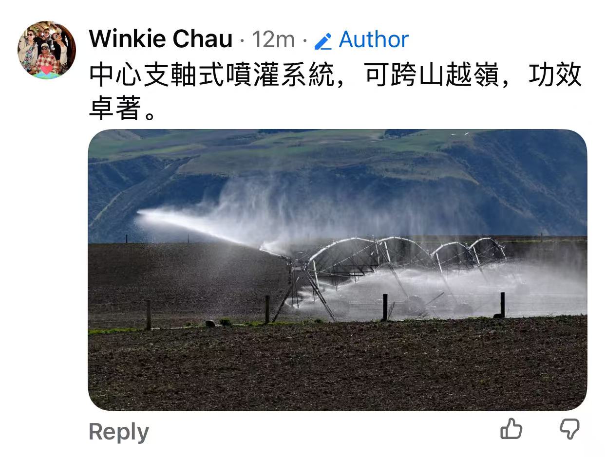 「以圖說事」 在紐西蘭,尤以南島的田野,常看到一節節附有巨輪的鋼架,連綿好幾公里,不是在平坦的阡陌迤邐;便是像龍般在崎嶇起伏的草坡盤踞。 我則邊逆光拍攝它們各種構圖和美態,邊為同行者介紹,那是最先進的「中心支軸式噴灌系統」(Center Pivot Irrigation Systems),與傳統漫灌或溝灌不同,它可隨意延伸架設,確保在任何地形上均勻灌溉,避免出現部分田地濕潤如尼加拉大瀑布,而其他區域乾燥似撒哈拉沙漠的情況。 根據產品說明,這種中心支軸式噴灌機設計,維修需求低。維護上花費的時間,也比其他噴灌機少得多。可專為不同田地量身定制噴灌系統,提供自動化、GPS 和遠端控制,無論何時何地,都能用手機查看田地狀況並控制噴灌機。 具體而言,生產商會根據地圖,繪製盡可能大的灌溉圈,以覆蓋最大面積。如需要更大的覆蓋範圍,可加裝末端噴槍或ESAC™。高效率的中心支軸式噴灌系統設計,確保高達98.2%的田地得到灌溉。 至於最卓越的是,Navigator GPS系統,旨在提高中心支軸式和側移式灌溉系統的精度、效率並減少操作誤差。 Navigator利用即時GPS追蹤,確保系統精準定位和移動,無需溝槽導引或埋設導線系統。此技術利用現有的交流電源線傳輸數據,並與 Reinke RPM 觸控螢幕面板,或 RPM Advanced Plus™ 面板連接,對噴槍和自動停止/反轉設定進行編程——所有操作均在衛星導航保障下進行,確保定位精度。另外,開放式框架設計,可輕鬆改裝到所有灌溉系統中。其堅固的底座採用 C 型槽鋼塔腿設計,能夠承受巨大的旋轉力,同時無需使用潤滑脂。確保持久耐用。維護支軸式噴灌系統非常簡單。由於採用了免維護軸承,和隱藏式V型環密封,無需潤滑軸承或檢查密封件。常規維護包括在寒冷氣候下,對系統進行冬季保養、檢查機械部件的磨損情況,及檢查輪胎氣壓和定位是否正確。 最後,我會向隨行朋友強調,紐西蘭非以農立國,相反,畜牧業才會是國之根本,而這種先進灌溉系統,主要是用來滋潤乾土種草,供乳牛享用。 附圖是紐西蘭南島中部小鎮 Omarama 外的中心支軸式噴灌系統,長幾公里,首不見尾。 |