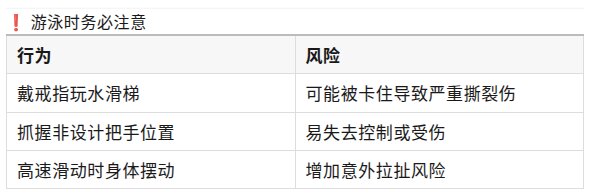 若发现更多风险,可能采取进一步干预。 这起事故提醒了什么?很多人习惯戴戒指游泳,却忽视了隐藏风险。 在高速滑动、抓握结构的环境下,戒指极易成为危险点。 重要提醒* 玩水滑梯前请摘下戒指、手链等饰品 * 只抓握官方设计的扶手位置 * 听从现场工作人员指示 |