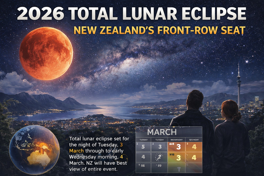2026唯一一次月全食来了! 你准备好熬夜了吗? 全球只有2%的人能完整观看,在新西兰抢先看! 华页 AI制图再过几天,新西兰将迎来 2026年唯一一次月全食,而且—— 我们是全球少数可以 完整观看全过程 的地区之一!