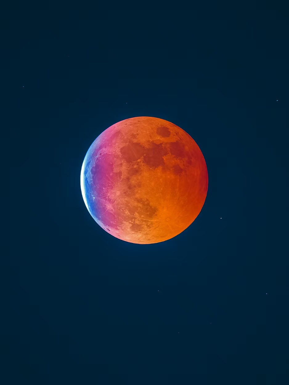 什么是“血月”?当月亮完全进入地球阴影时,地球大气层会折射阳光中的红色波段,让月亮呈现出迷人的深红色—— 这就是俗称的 “Blood Moon(血月)”