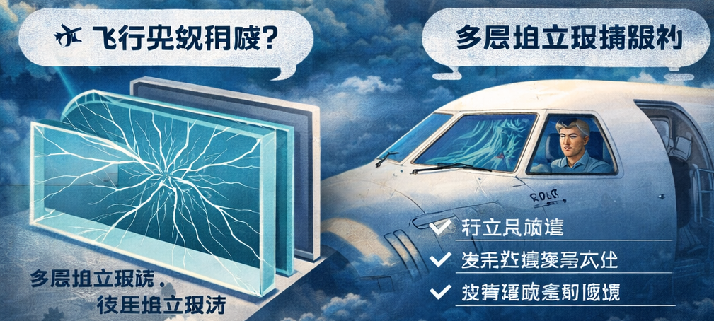 同时,奥克兰机场的紧急服务部门也进入待命状态,以防万一。 最终: * 飞机顺利降落 * 未发生事故 * 未影响乘客安全 为什么裂纹不会立即造成灾难?Nathan McGraw 指出,现代客机挡风玻璃采用 多层独立玻璃结构设计: