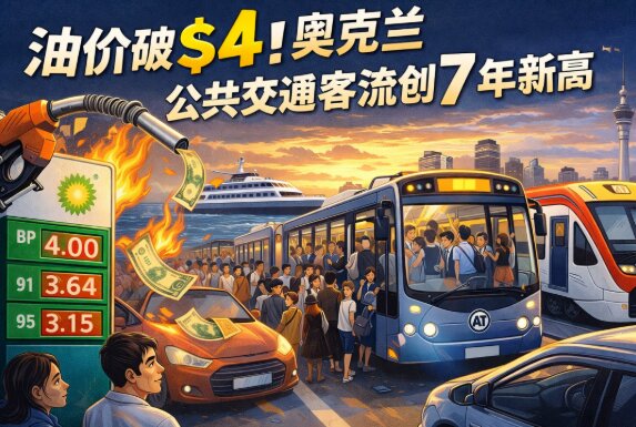 随着新西兰各地燃油价格飙升,奥克兰创下七年来公共交通最繁忙的一天。这一增长发生在一份报告发布之后,该报告显示公共交通是奥克兰最便宜的出行方式。 昨日,奥克兰汽油价格自三周前中东战争爆发以来首次突破每升4纽元。BP New Lynn加油站的98号汽油售价为4.039纽元/升,91号汽油为3.649纽元/升。 奥克兰昨日平均油价为: