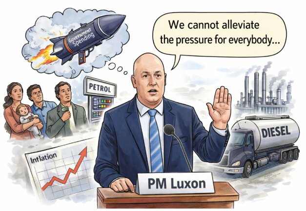 疫情期间的支出决策带来了长期影响,包括高通胀、高利率、高债务,以及一场持续的经济衰退,而新西兰原本才刚开始从中复苏,就遭遇新的冲击。 总理Luxon表示理解物价上涨对家庭带来的压力,但拒绝动用所谓的“财政火箭炮”(大规模支出),因为这可能进一步推高通胀。华页AI制图 目前,政府已向“在职税收抵免”(In-Work Tax Credit)提供每周50纽币的补贴,预计将惠及约14.3万个有子女的家庭。 不过,其他群体,例如福利领取者和养老金领取者,并未从该项调整中受益,但他们将在4月1日获得自动年度补贴上调。 上周,政府还宣布对家庭护理及社区支持工作者的里程补贴临时提高30%。这些工作者需要驾车上门提供服务。 Luxon:不会动用“财政火箭炮”总理Christopher Luxon周一表示,不会扩大支持范围。他称理解物价上涨对家庭带来的压力,但拒绝动用所谓的“财政火箭炮”(大规模支出),因为这可能进一步推高通胀。 当被问及是否考虑支持其他群体(包括受困企业)时,Luxon再次强调政府采取的是“及时、有针对性、临时性”的应对方式。 民调与压力并存总理当天还被问及最新的Taxpayers' Union-Curia民调,显示国家党支持率上升至29.8%。他回应称不对民调发表评论,当前重点是应对燃油危机。 燃油危机加剧压力总理表示,政府不会扩大对因燃油价格飙升而受困群体的财政支持。 在回应企业关于成本上升的问题时,Luxon指出,政府的应对“框架”是明确的: