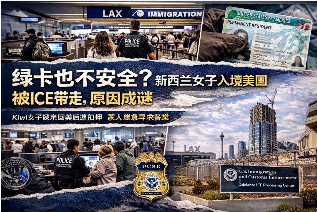 绿卡在手却被拘留?新西兰女子入境美国后遭ICE扣押,引发家属强烈质疑 一名持有美国绿卡的新西兰女子,在结束返乡探亲之旅后入境美国时,竟被当场带走并拘留,至今原因不明,引发家属极度焦虑与外界关注。 入境即被带走:家人“再也没见到她”36岁的Everlee Wihongi,于4月10日从奥克兰飞抵洛杉矶国际机场,在入境检查时被移民官拦下。 她的母亲Betty回忆,当时执法人员告诉他们只是“简单聊一聊”,让家人去行李转盘等候: